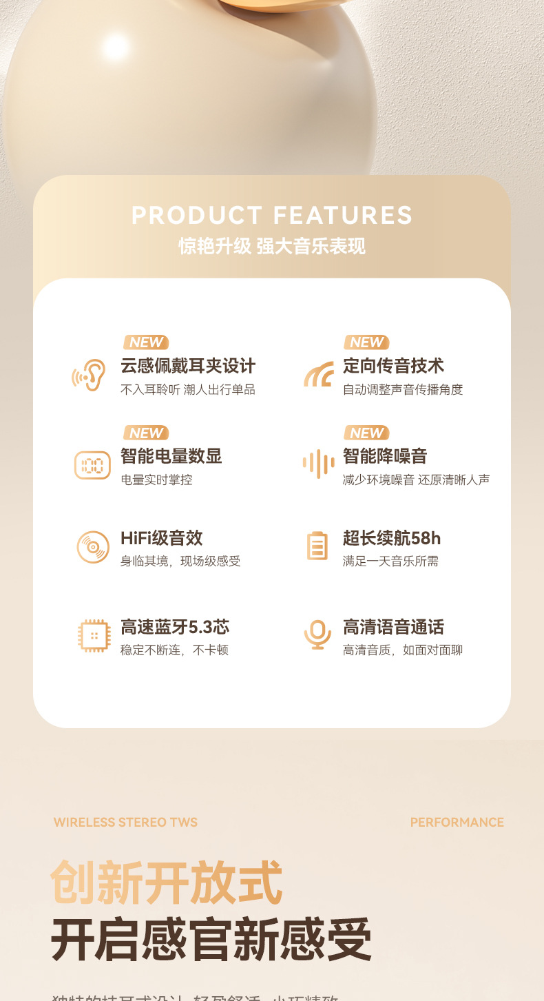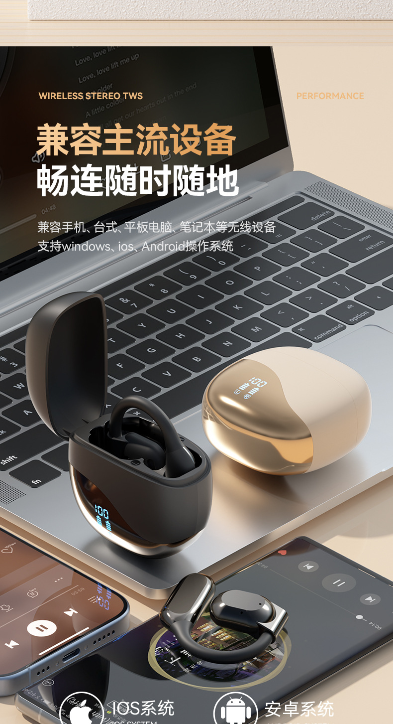 LX-M79 骨传导OWS电量数显耳夹款式TWS耳机运动跑步专用狂甩不掉蓝牙耳机