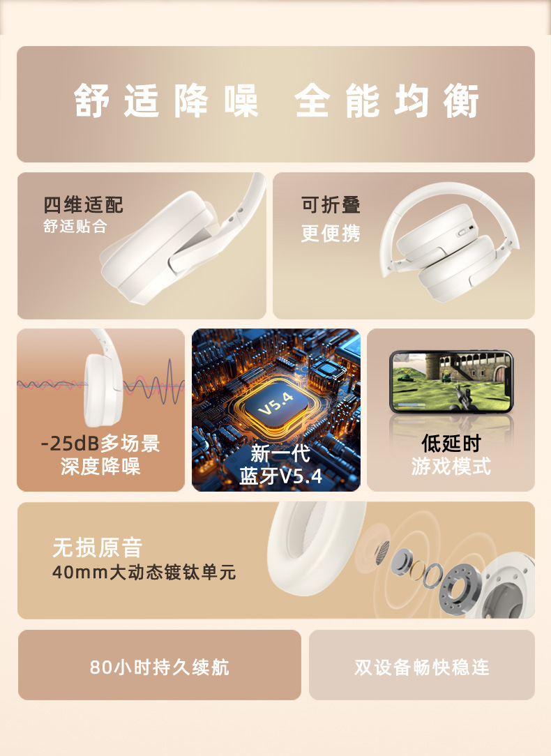 LX-L50 ANC主动降噪头戴式蓝牙耳机超长续航简约折无线耳机