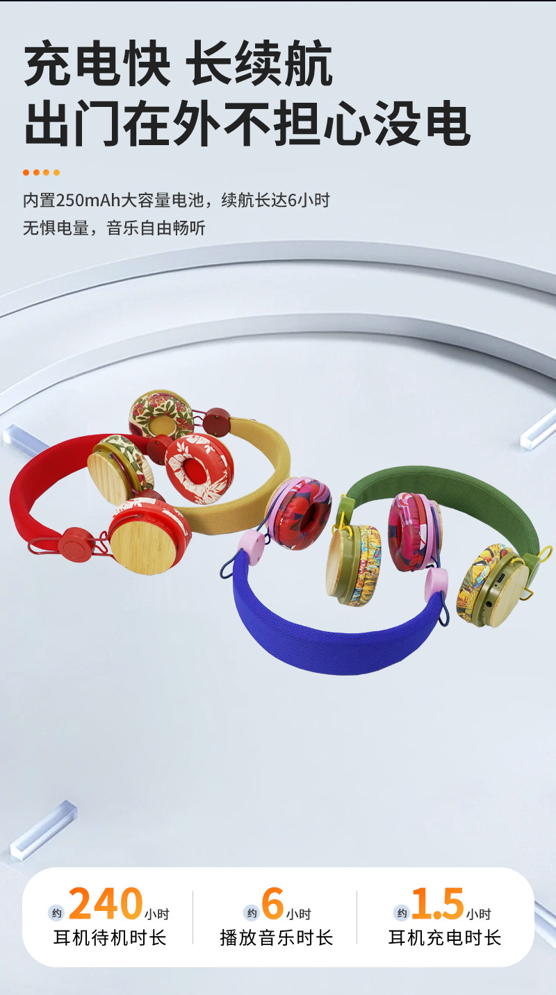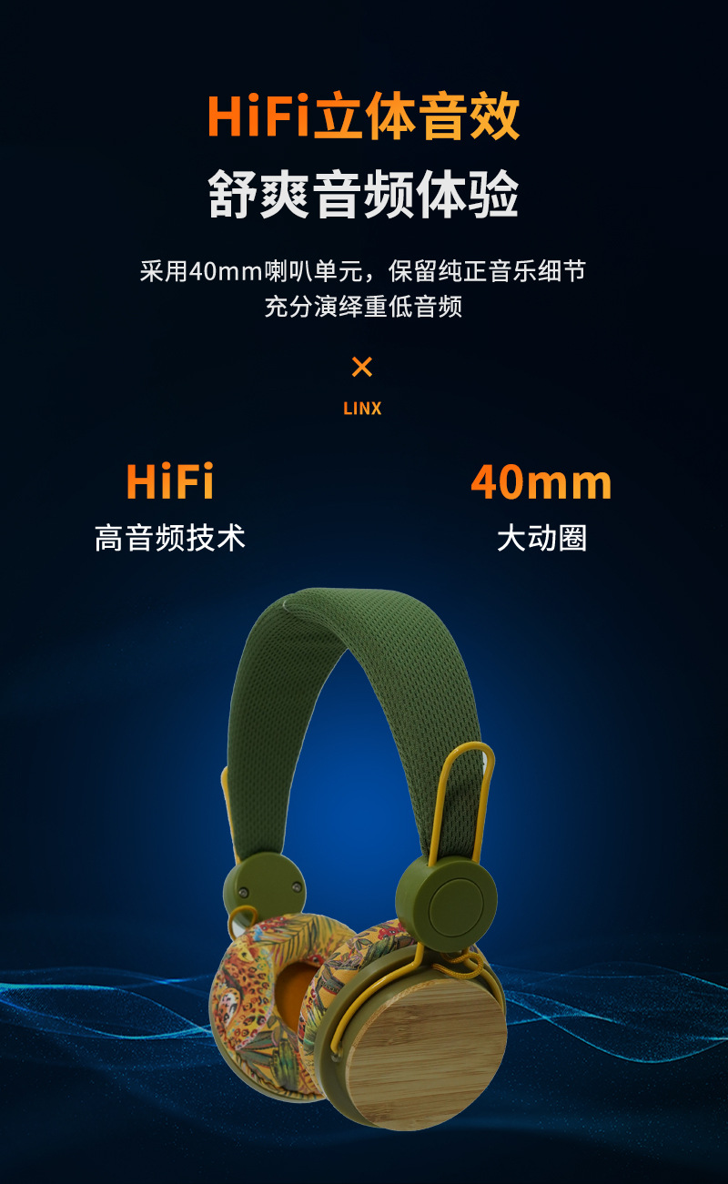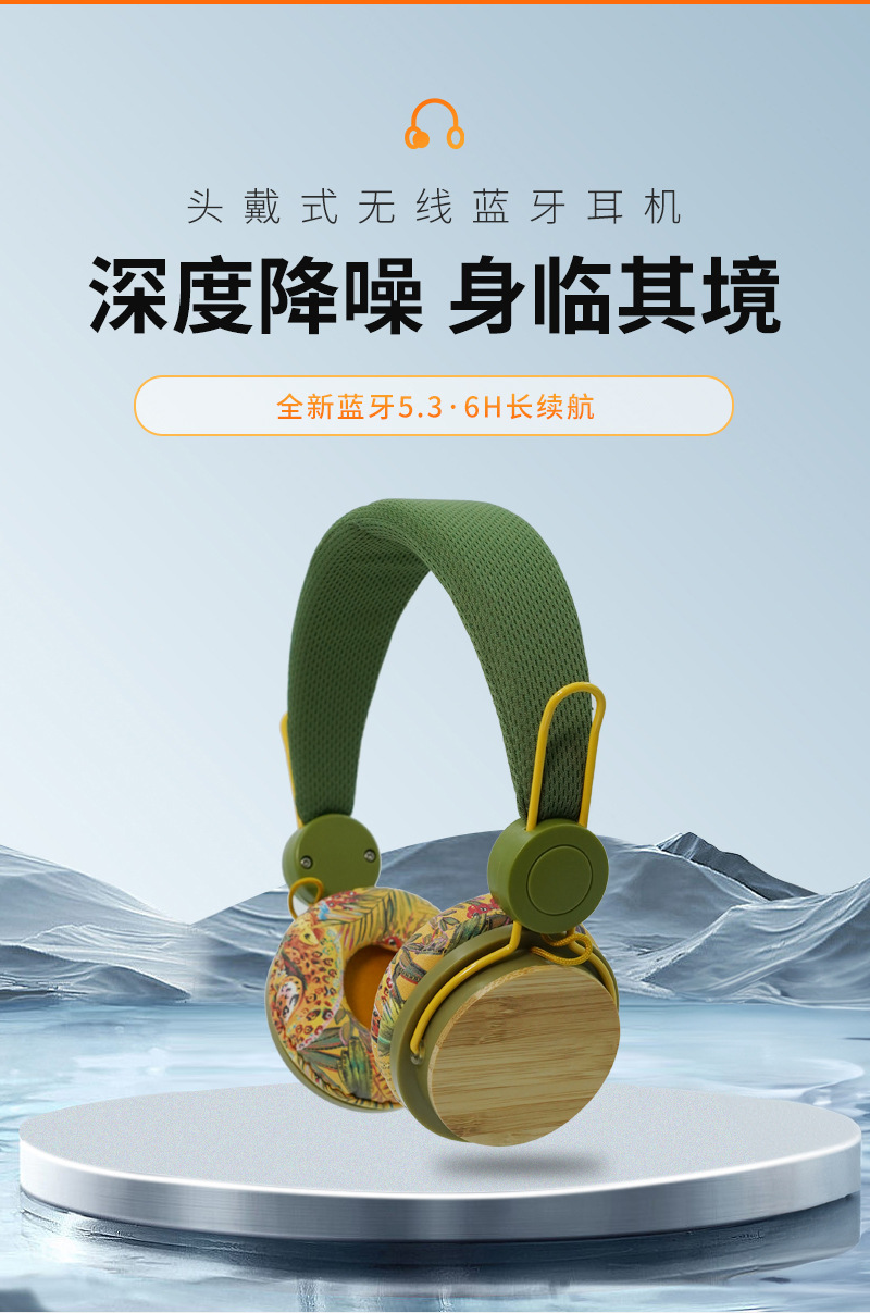 批发跨境热销竹子贴片立体声头戴式无线蓝牙耳机