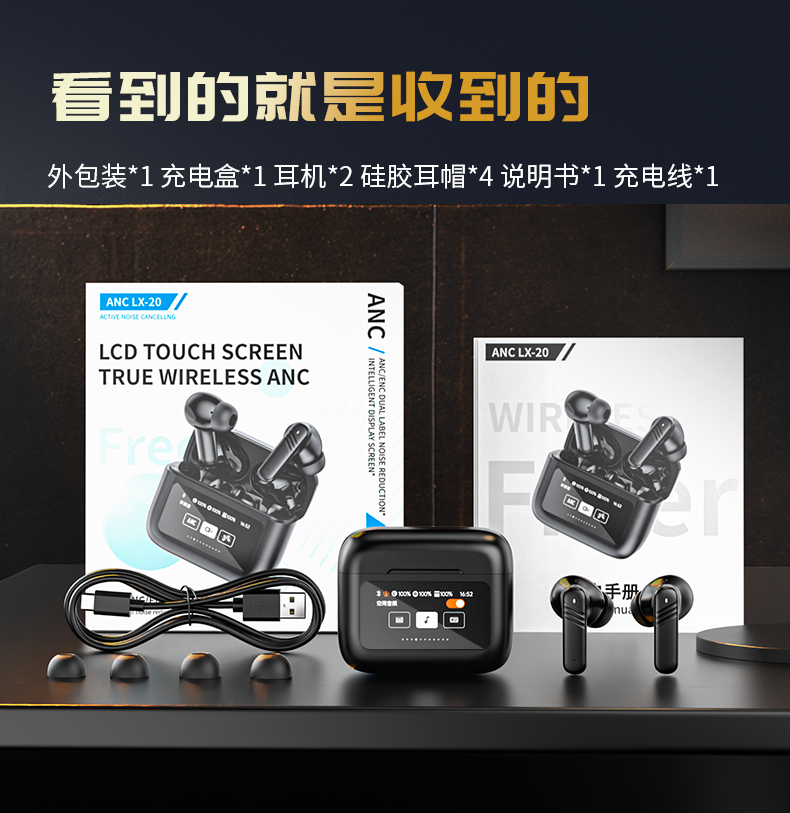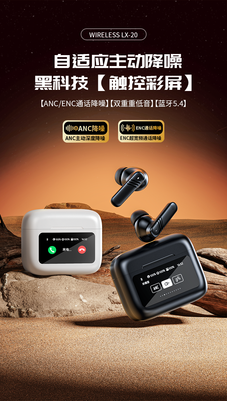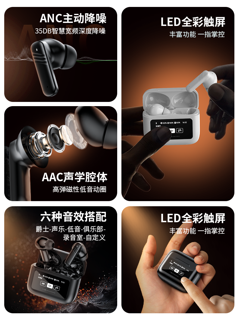 彩屏触控TWS入耳式降噪耳机高品质跨境无线蓝牙耳机