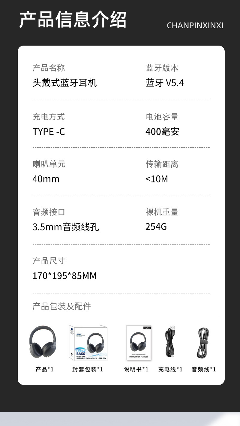 电脑无线蓝牙新款手机ANC降噪游戏音乐头戴式蓝牙耳机