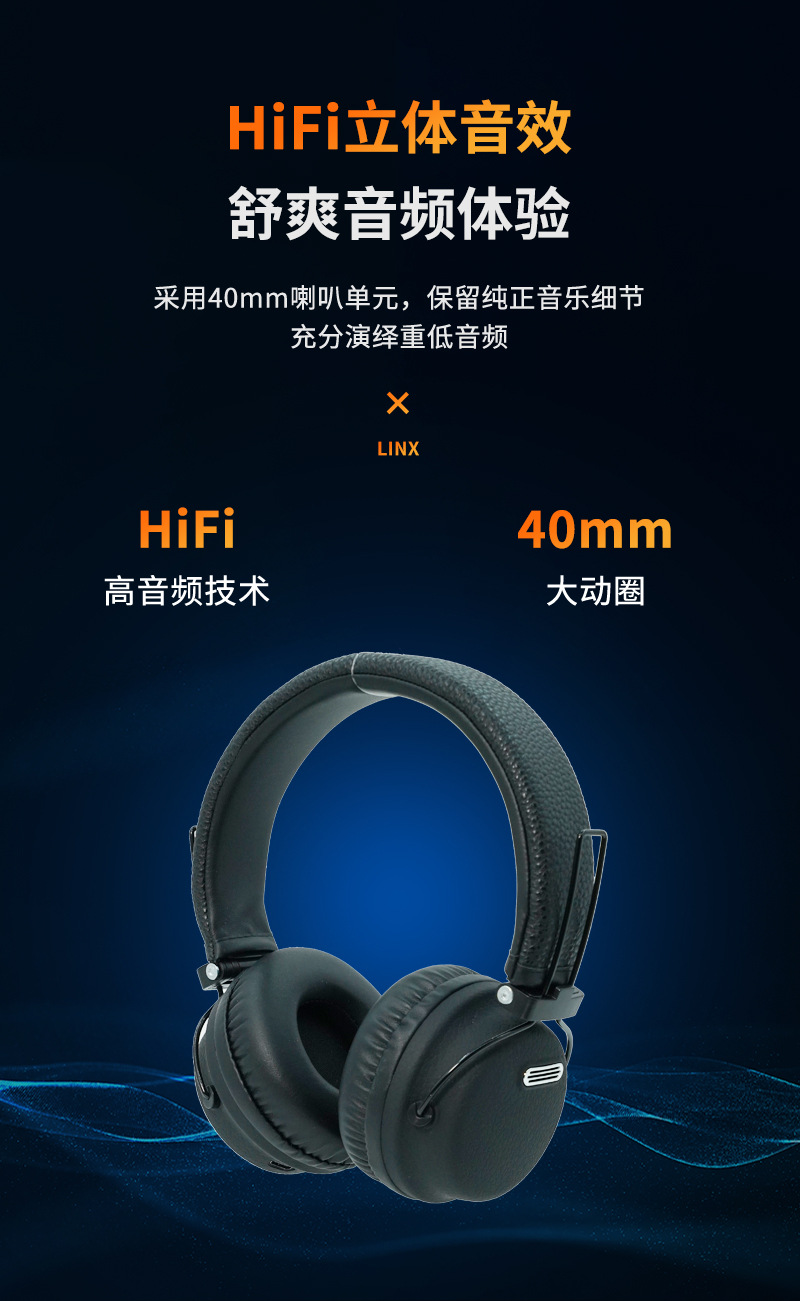 跨境爆款电竞游戏超长续航无线运动立体头戴式蓝牙耳机