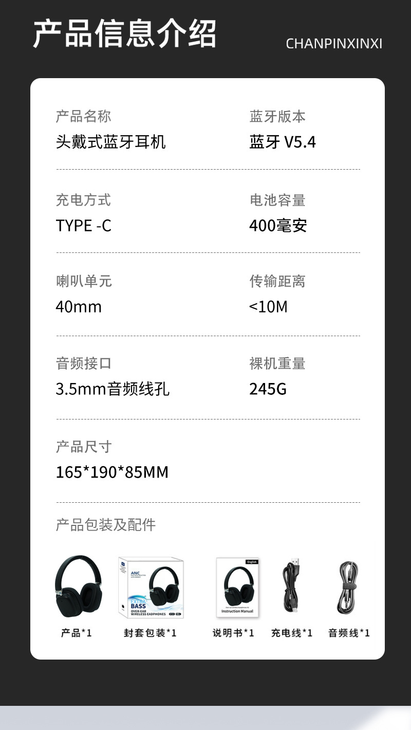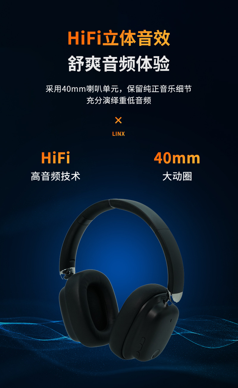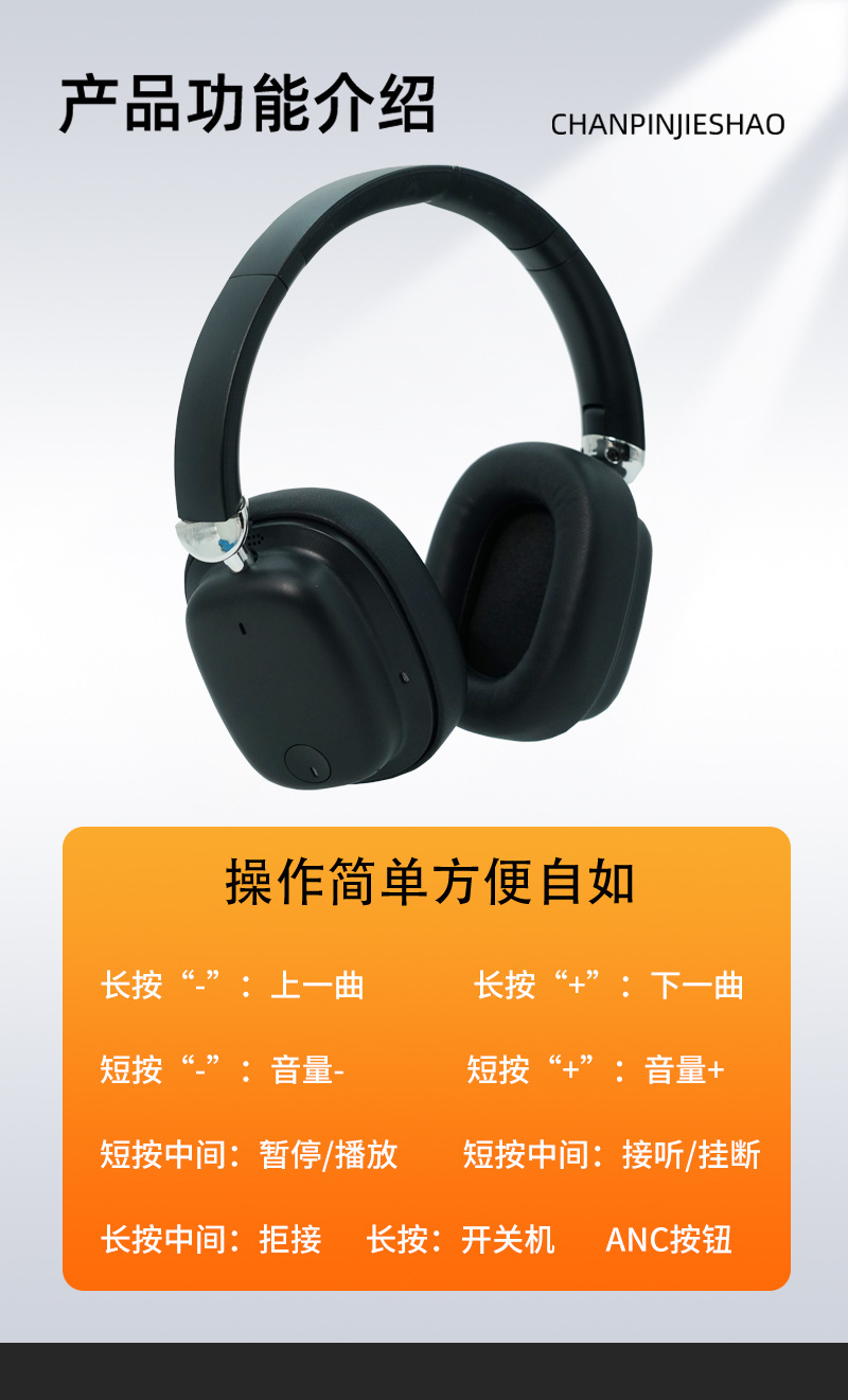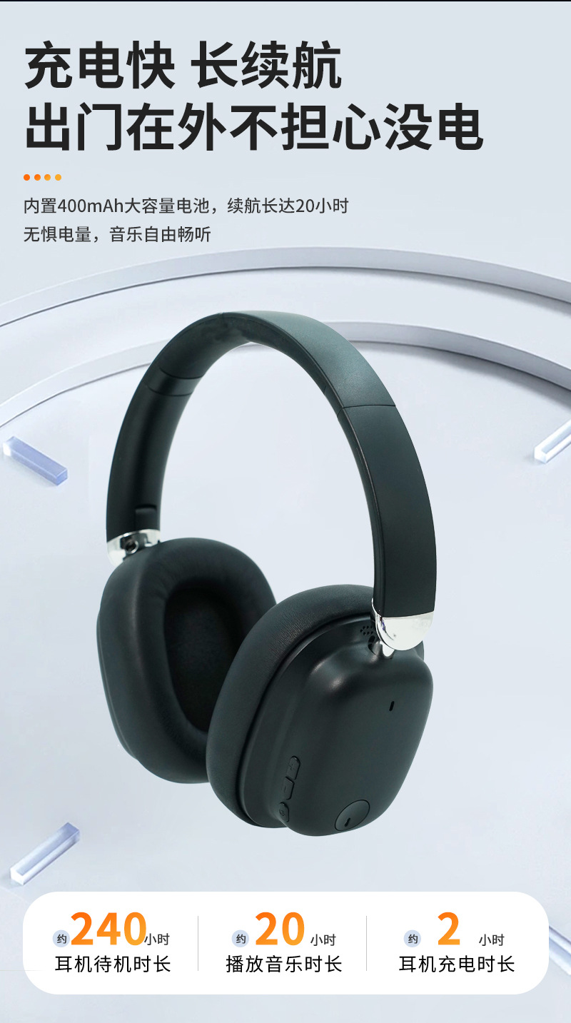 批发黑色头戴式无线ANC降噪立体笔记本游戏长续航高颜值蓝牙耳机